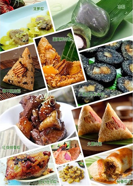 如今的粽子更是多種多樣,璀璨紛呈。現今各地的粽子,一般都用箬殼包糯米,但內含的花色則根據各地特產和風俗而定,著名的有桂圓粽、肉粽、水晶粽、蓮蓉粽、蜜餞粽、板栗粽、辣粽、酸菜粽、火腿粽、咸蛋粽等等。
