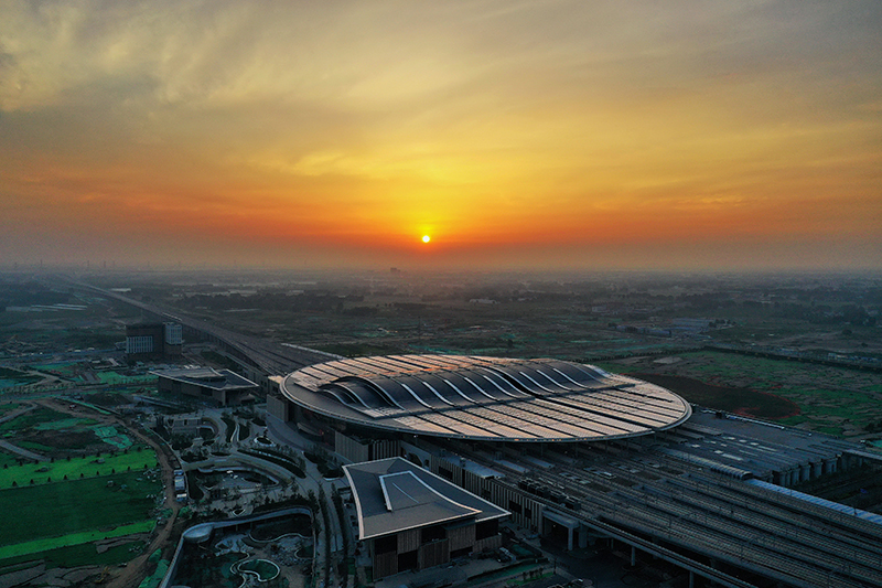這是京雄城際鐵路雄安站(7月1日攝,無人機照片)。新華社記者 牟宇 攝