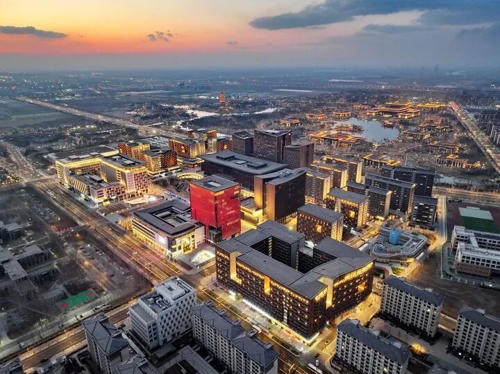雄安商務(wù)服務(wù)中心夜景(2025年3月15日攝,無人機照片)。新華社記者 牟宇 攝