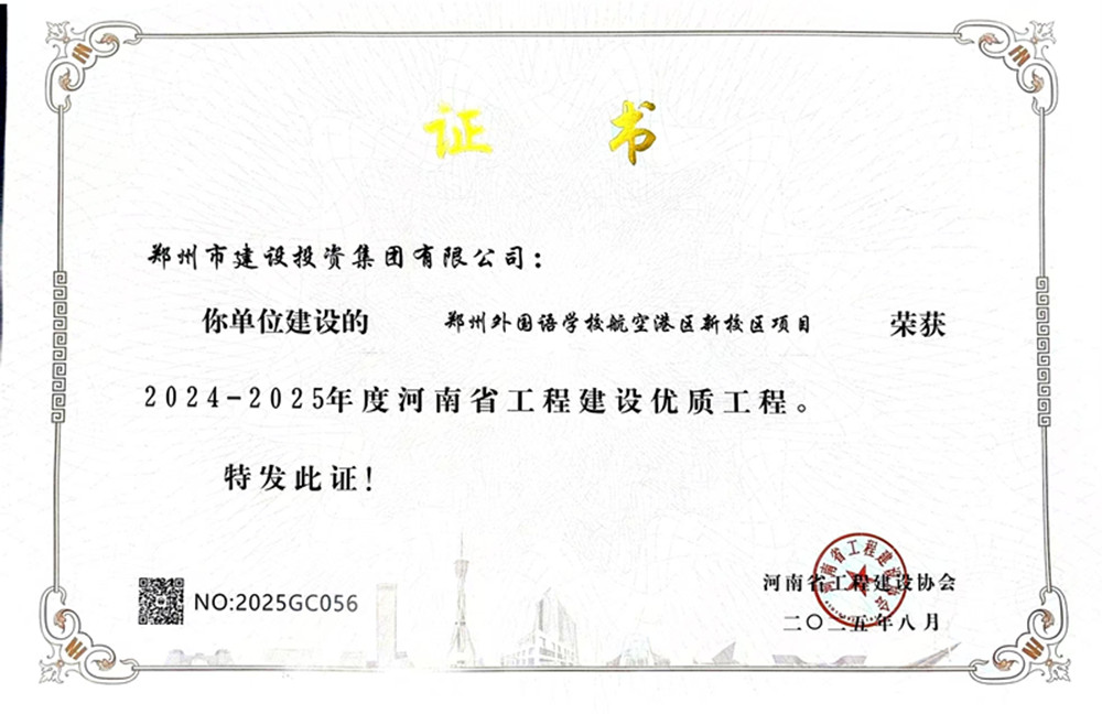 近日,由集團公司代建的鄭州外國語學校航空港區(qū)新校區(qū)項目榮獲2024-2025年度河南省工程建設優(yōu)質工程榮譽。