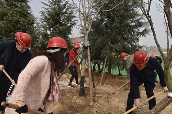 一到植樹現(xiàn)場(chǎng),所有黨員干部都拿著鐵鍬,三四人一組,有的扶苗,有的培土,有的踩實(shí),有的澆水,大家都充滿激情,鼓足干勁,相互配合,栽下一株株樹苗,植下一片片新綠,現(xiàn)場(chǎng)呈現(xiàn)出一片熱火朝天的勞動(dòng)場(chǎng)景。為確保新樹栽種的成活率,專業(yè)人員在植樹現(xiàn)場(chǎng)進(jìn)行技術(shù)指導(dǎo),確保做到保質(zhì)、保量、保成活。經(jīng)過不到兩個(gè)小時(shí)的努力,雪松、白玉蘭、金枝槐、紅碧桃等43棵樹木全部栽種完成。